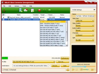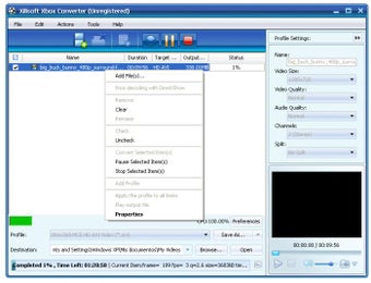 Añades vídeos a la lista, seleccionas qué formato de conversión deseas, escoges el tamaño de vídeo y la calidad de vídeo y audio, y Xilisoft Xbox Converter hace el resto.